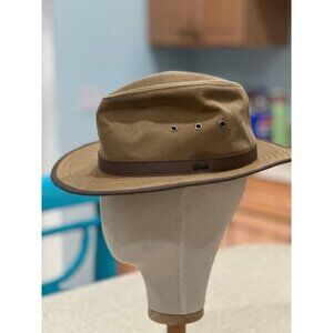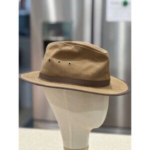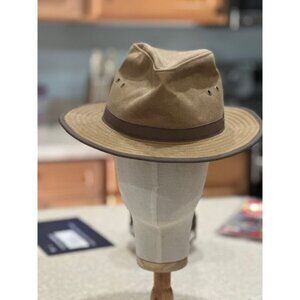 Mens Size Medium Original Outback Oilskin Hat 100% Cotton with Koala Pouch. Brown with breathable holes. Sports the Outback Emblem with a leather band.