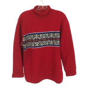 Mens Size Medium Timberland Red Vintge Pure Wool Fair Isle Turtleneck Sweater