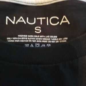 Excellent used condition, men's size small, Nautica long sleeve t-shirt in navy blue. Light blue Nautica on the front and N.S.8.3 Atlantic Division Classics 1983 on the back. No stains or rips. All items are cross posted on various other sale sites.