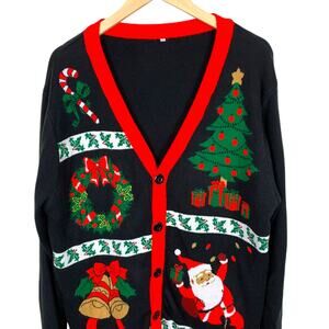 Men's Size XL Christmas Black and Red Cardigan Themed Pictures & Holly