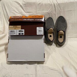 Skechers - air cooled, memory foam slip on shoes. Size 13 relaxed fit. Color is charcoal vintage washed. Brand new, never worn.
