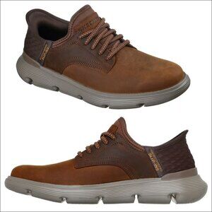 JUST STEP IN & GO™ Master your efficiency with a comfortable business casual look wearing Skechers Hands Free Slip-ins®: Garza - Gervin. Designed with our Heel Pillow®, this TOUCHLESS FIT® Oxford style features a smooth leather upper with stretch laces, a charcoal-infused Air-Cooled Memory Foam® insole, and Skechers Goga Mat Arch™ support.