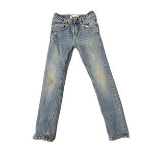 Men's skinny fit Levi's 510 jeans, faded wash and gently used with a slight hint of green at the knees. Priced accordingly. Size 26x 27. Please Zoom on the photos to be sure you know what you're getting.