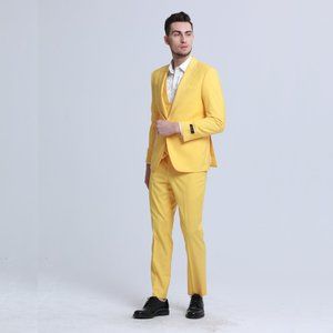 Men's Skinny-Fit 3-Piece Suit w/ Double-Breasted Vest, Yellow Canary