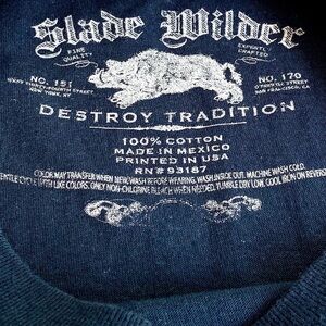 Men’s Slade Wilder Dark Navy/White Graphic T-shirt. Destroy Tradition- New York to California - Expertly Crafted. Label is distressed print, this is a Large. Please see measurements to ensure proper fit. All my items arrive clean and ready to wear. Bundle for combined shipping.