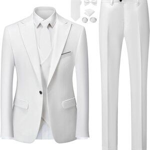 Men's Slim Fit 3-Piece Tuxedo Suit Set for Weddings & Prom - White, Size S