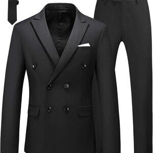 Men's Slim Fit Double Breasted Tuxedo Suit - Black, Size 38 for Weddings & Proms