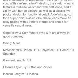 Men's Slim Fit Hemp Jeans - Goodfellow & Com Blue Denim 34×34 nwt