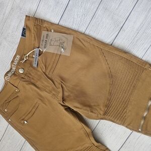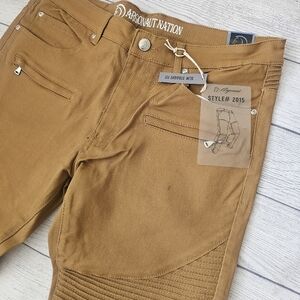 Men's Slim Straight Fit Biker Style Denim Jeans In Wheat/Timber