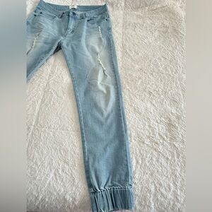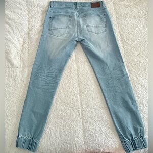 Civil Society jeans, men’s slim straight jeans, light wash denim, distressed jeans, streetwear, casual men’s fashion, elastic cuff jeans, trendy denim, men’s casual outfit, modern slim fit jeans.