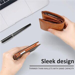 Wallet offers 9 card pockets and 1 ID window.The slim wallet is ideal for carrying business cards, credit and debit cards, bills etc..Designed with style and convenience in mind, this men's wallet sports a slim, minimalist profile that slips effortlessly into your pocket, making it an ideal everyday accessory.