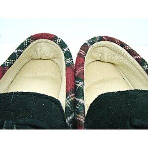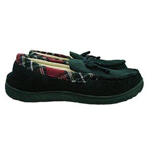 Mens Slippers Black With Plaid Trim Fleece Lined Hard Bottom Sz Large Unbranded