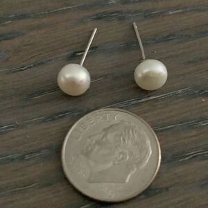 Men’s Small Genuine Freshwater Pearl Studs, Sterling Silver Unisex Gift Earrings