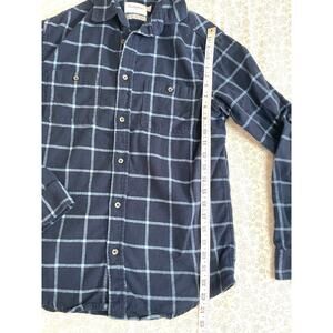 Mens Small Navy Blue Plaid Flannel Shirt Fall Layering Piece