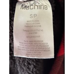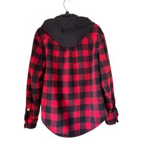 Mens Small Oversized Hooded Fleece Lined Gingham Plaid Button Up Shirt Jacket