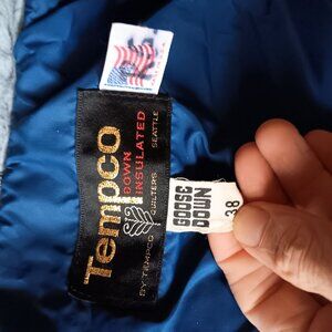 Men's Small Vintage Tempco Down Insulated Blue Quilted Jacket Seattle 38 Puffer