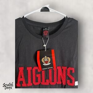 Elevate your game-day style with this Men's Soccer Shirt, size Medium, model M01. Brand new with tags (NWT), this shirt is made from 100% cotton for a soft, breathable feel that keeps you comfortable on and off the field. The sleek black design features the Aiglons branding, adding a bold and sporty touch to your wardrobe.