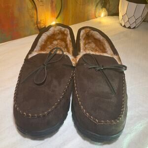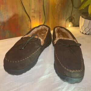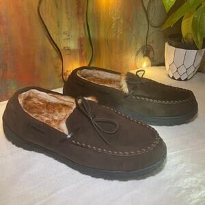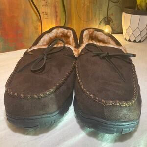 VLLy Men's Soft Plush Lining Moccasin Slipper, Slip-Resistance, Dark Brown, 11 US