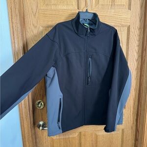 Stay warm and stylish with this versatile black and gray softshell jacket. Perfect for any outdoor adventure. Hardly worn.