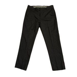Men’s Solid Black Pleated Slim Fit Dress Pants 34 S