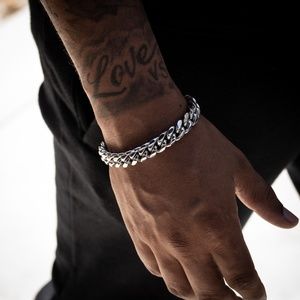 Mens Solid White Gold Plated 316 Stainless Steel Thick Heavy Cuban Link Bracelet