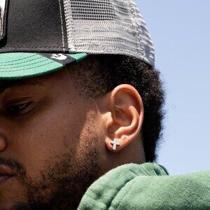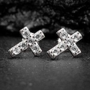 The hip hop style cross studs for men are adorned with 5A cz stones, meticulously hand set to provide a dazzling display of brilliance that will turn heads wherever you go. These aren't just any regular men’s earrings, but a true testament to your fashion sense.