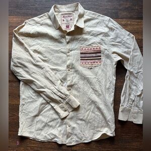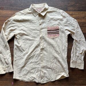 Men's Soulstar Shirt Beige Multicolor Pocket Button-Down XL Aztec Street Tribal. 100% Cotton. Light, breathable, and open.