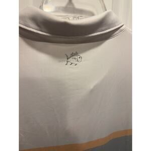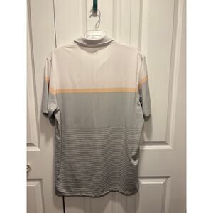 Men’s Southern Tide Polo Shirt Size XL White, gray, and orange stripe Pit to pit 24 inches Length 32 inches 94% polyester 6% rayon