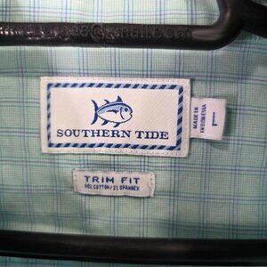 Mens Southern Tide Trim Fit Green Blue Plaid Shirt Long Sleeve Button Up Size L