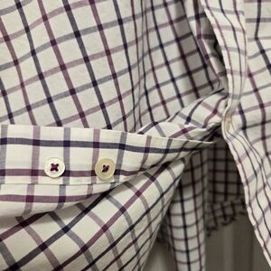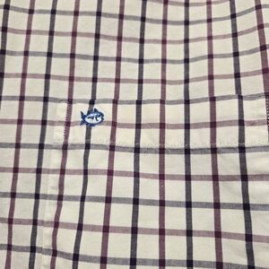 Men’s Southern Tide White Purple check Collared Shirt sz L