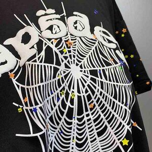 Men's Sp5der Print Round Neck Black Short Sleeves