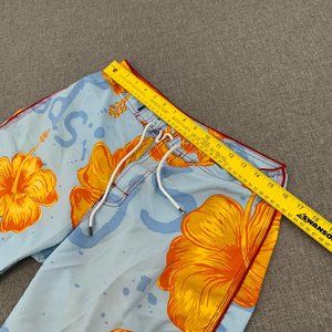 Men's Speed Beach Surf Board Shorts Small Blue Yellow Floral Drawstring