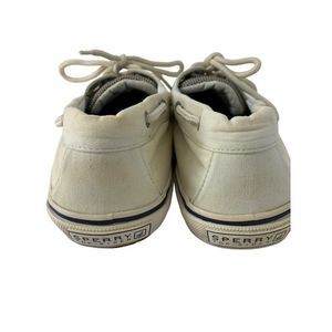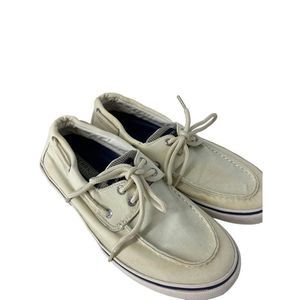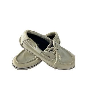 Men’s Sperry Top Sider Boat Deck Shoes Low Sneaker 9.5 Beige Canvas 5253 Vegan