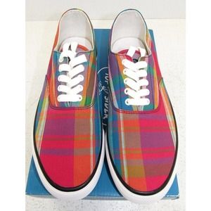 Mens Sperry Top-Sider Cloud CVO Deck Sneakers Plaid Pink Canvas - NWT - STS22337