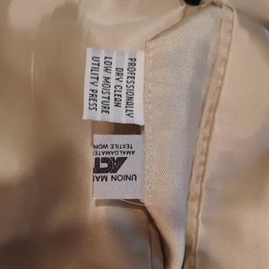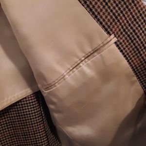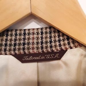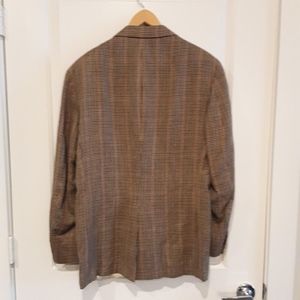 Made in USA. One owner. Two button closure, 4 button cuffs, half lined with two inside pockets. Dry clean only. Size 40R, brown. Overall good condition, original owner. Pet free and smoke free environment.