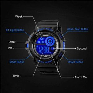 🧿50M 5ATM WATERPROOF, SWIMMING, SHOWER, HANDWASH, RAIN, SWEAT, NO PROBLEM! MULTI-FUNCTIONAL with STOPWATCH, ALARM, BACK LIGHT. 50M 5ATM Water resistant, make it perfect for all kind of indoor and outdoor sports, activities or daily use. Calendar Date, Week, Day, Alarm, Stopwatch, Clean Digital Display, LED Back Light, Shock Resistant, this is a great value watch you don't want to miss. NOTE: please DO NOT press any button in the water.