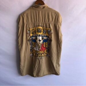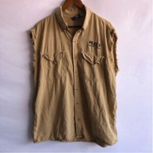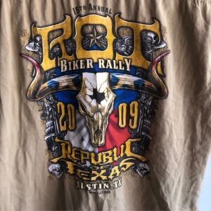 Tan Frayed Raw Hem Austin TX Texas Biker Rally Republic of Texas Size XL Extra Large There is a small dime sized hole in the side but it is not too noticeable with the distressed look/design (see last photo)