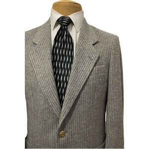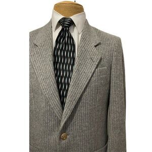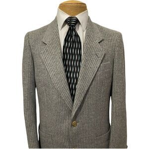 Men's Sports Coat Gray Gold Buttons Flannel Camel Hair Wool Blend Size 39 R