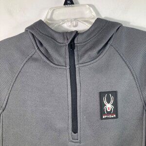 Mens Spyder Polar Pullover Half Zip Hoodie Soft Shell Jacket Gray Black M Polyes