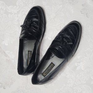 Men's Stacy Adams Black Snakeskin and Leather Tassel Slip-on Dress Loafer