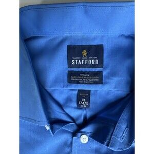 Men's Stafford Dress Shirt Broadcloth Blue Regular Fit Easy Care Sze XL. Condition is Pre-owned - Excellent. Shipped with USPS Ground Advantage.