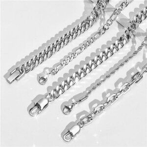 Mens Stainless Steel Chain Bracelet Set Cuban Link Figaro Rope Paperclip