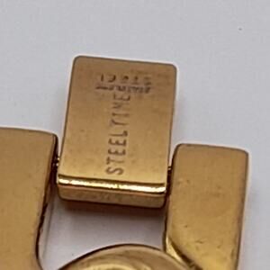 *Description: This is a gold-toned, chunky chain link bracelet with a box clasp, identified as a "Steeltime" bracelet. Steeltime is a brand known for its men's jewelry, particularly bracelets, often made of stainless steel with gold plating. These bracelets come in various styles, including Cuban link, Figaro, and Franco chains. The bracelet in the image appears to be a Cuban link style, characterized by its thick, interlocking links. Steeltime bracelets are often described as durable and designed for everyday wear. This would be a great addition to your jewelry collection or make a great gift!
