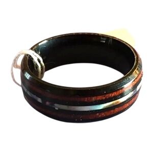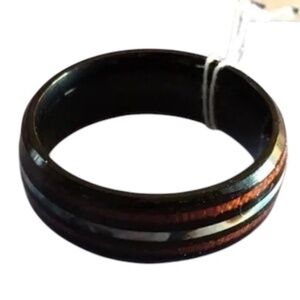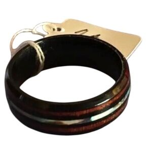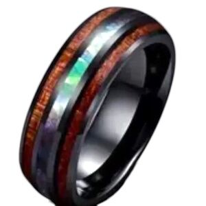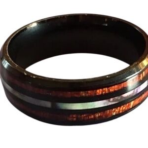 Men's Stainless Steel Ring Koa Wood-Grain Design Abalone Shell Stripe, Size 11