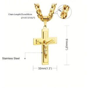Men's Stainless Steel Triple Cross Pendant Necklace With