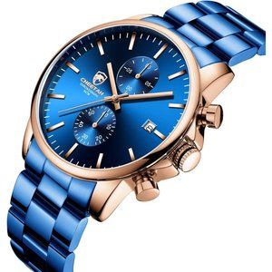Mens Stainless Steel Waterproof Chronograph Auto Date Quartz Watch