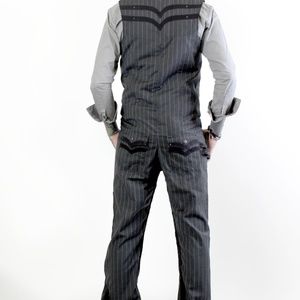 This listing is for the solid black pinstripe version in a size medium (size 32-34 pant).