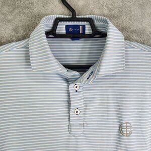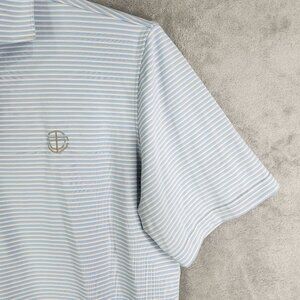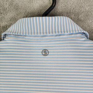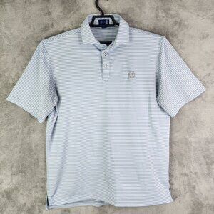 Men's Stitch Golf Striped Polo Shirt Blue Gray & White Short Sleeve Size M/L