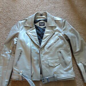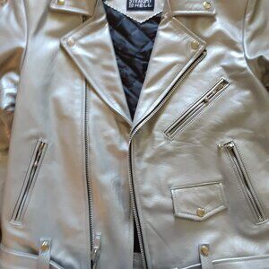 Mens Straight to Hell commando Punk Leather jacket silver size 40