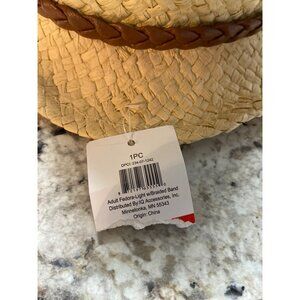 Mens Straw Fedora Hat Braided Faux Leather Band Natural Woven Beach Western